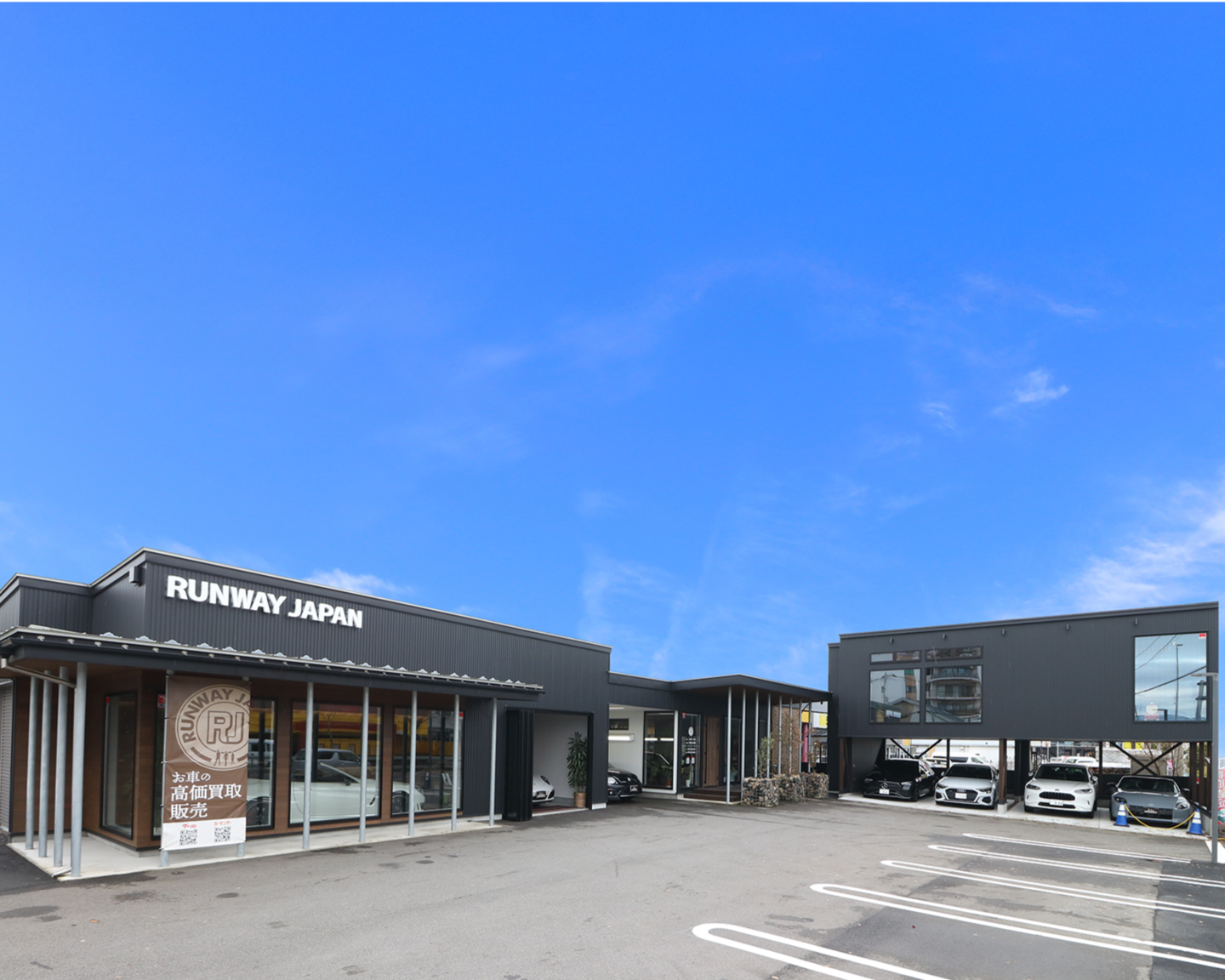 「RUNWAY JAPAN」・・・一見するとこれは何の会社だろう?と疑問を抱くと思います。「RUNWAY」とはファッションショーのランウェイそして、滑走路の意味があります。思い入れのある社名は「お客様が車を通して人生のランウェイに立てるように」「車との出会いでさらに飛躍できるように」という願いが込められています。車を販売するだけでなく、その先へ。未来へ。お客様のカーライフすべてをサポートするカーディーラーを目指します。